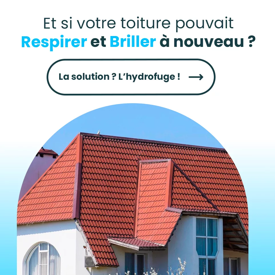 Un hydrofuge est un produit imperméabilisant appliqué sur la toiture. Il agit comme une barrière protectrice qui empêche l’eau de pénétrer dans les matériaux, tout en laissant votre toiture respirer. Contrairement à un simple nettoyage, l’hydrofuge agit sur le long terme pour préserver et renforcer la structure du toit.